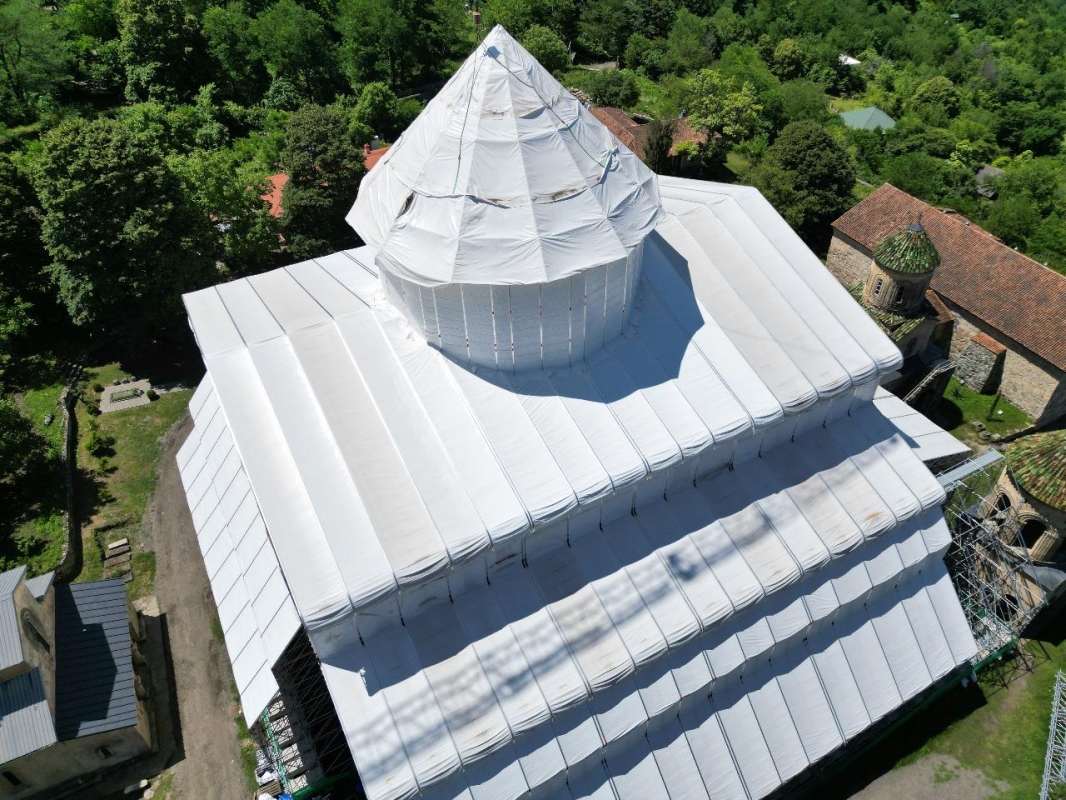 გელათის მსოფლიო მემკვიდრეობის ძეგლის ღმრთისმშობლის შობის სახელობის ტაძარის ერთიანი დროებითი გადახურვის სტრუქტურული სამუშაოები დასრულდა. დღეის მდგომარეობით, ტაძარი სრულად არის დაცული ატმოსფერული ნალექებისა და მძიმე კლიმატური პირობების უარყოფითი გავლენისაგან. ამავდროულად, გადაწყდა, რომ ერთიანი დროებითი გადახურვის კუთხეები და აღმოსავლეთ-დასავლეთის მკლავების გადახურვის დარჩენილი ზედა სამკუთხედები ეტაპობრივად დაიხუროს, უახლოესი ორი თვის მანძილზე, რათა ტაძარი გეგმაზომიერად ადაპტირდეს შესაფუთ მასალასა და ტაძრის ექსტერიერს შორის ახლად წარმოქმნილ კლიმატურ პირობებთან.